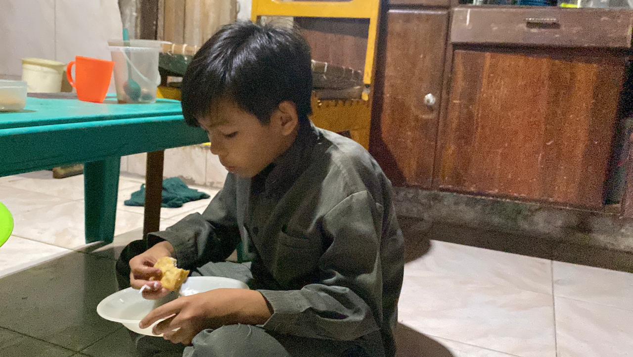Bayu bercerita kalau setiap hari ia hanya makan satu kali sama neneknya. Bahkan, ketika di sekolah pun ia mendapatkan MBG ia bawa pulang biar bisa makan berdua dengan nenek.