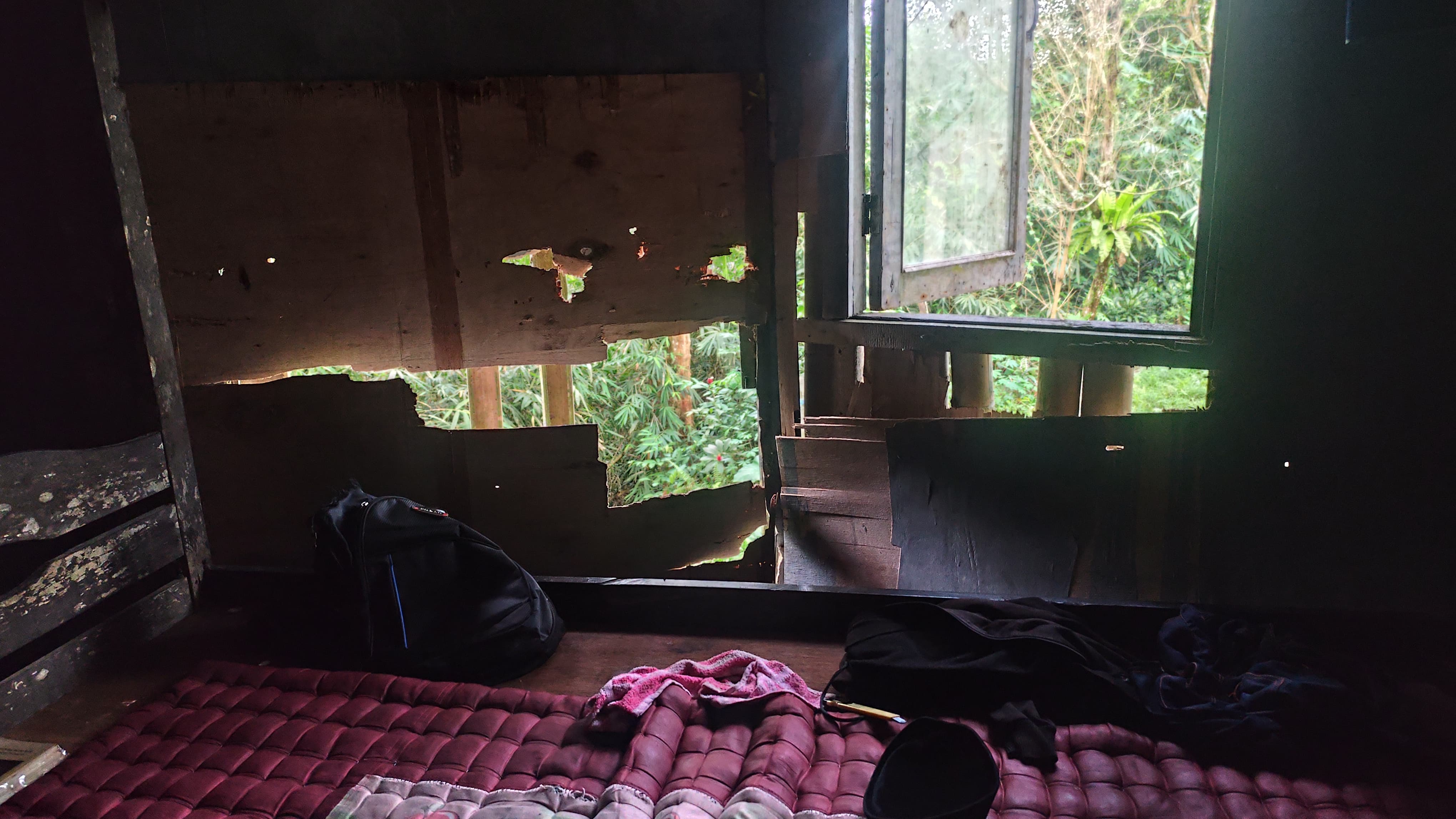 Dinding yang mulai retak, atap bocor di beberapa sisi, dan lantai yang sebagian masih beralaskan papan.🥺