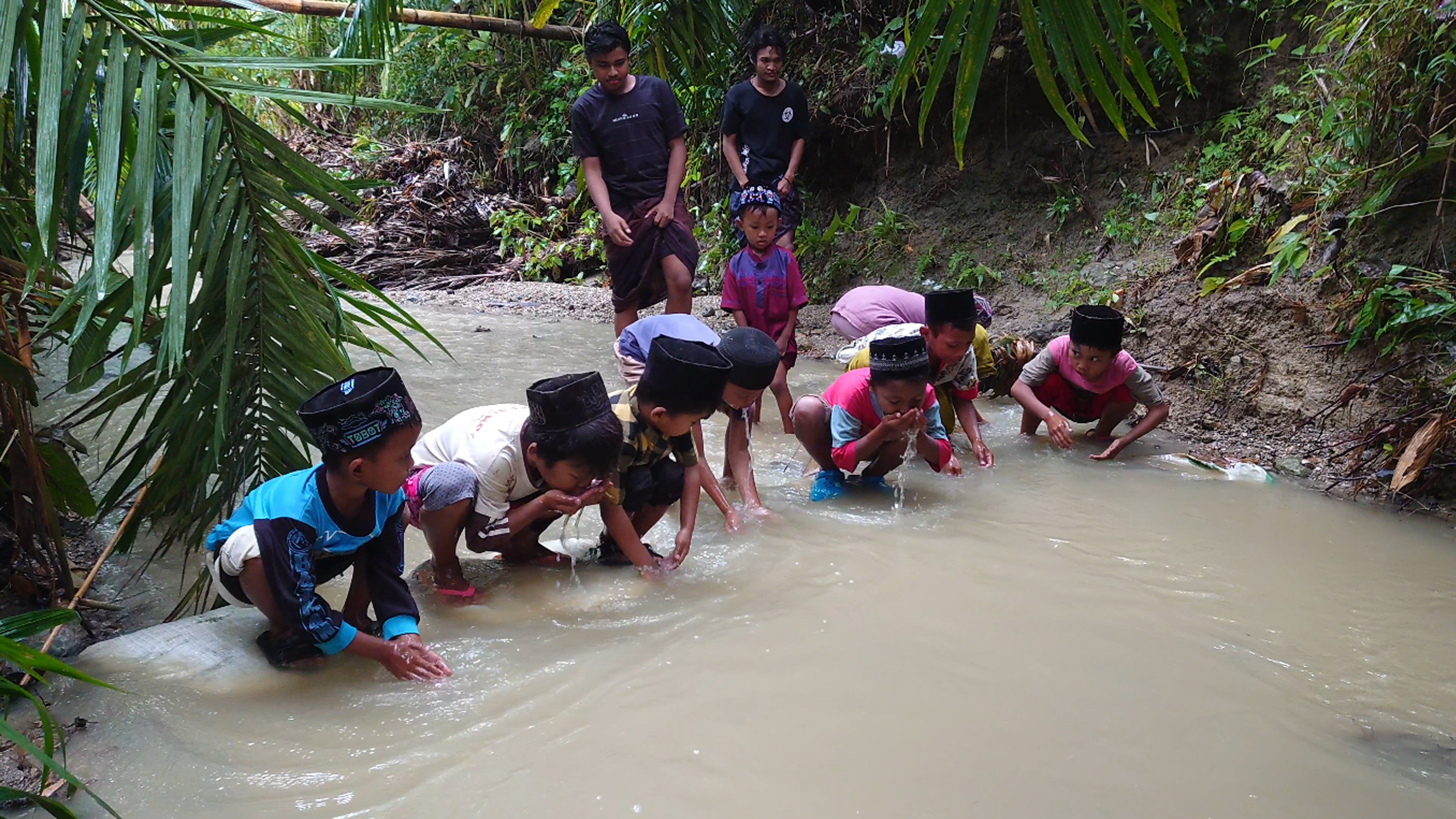 Hanya untuk berwudhu para santriwati harus menumpang ke rumah warga, sedangkan jika penuh para santri harus berjalan ke sungai sekitar 300 meter dan kondisi jalannya pun licin dan curam.