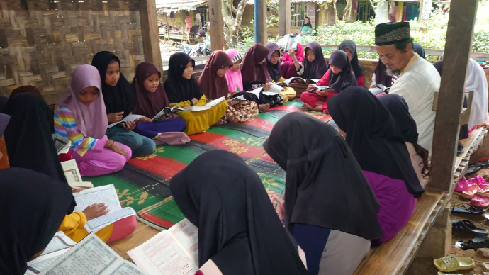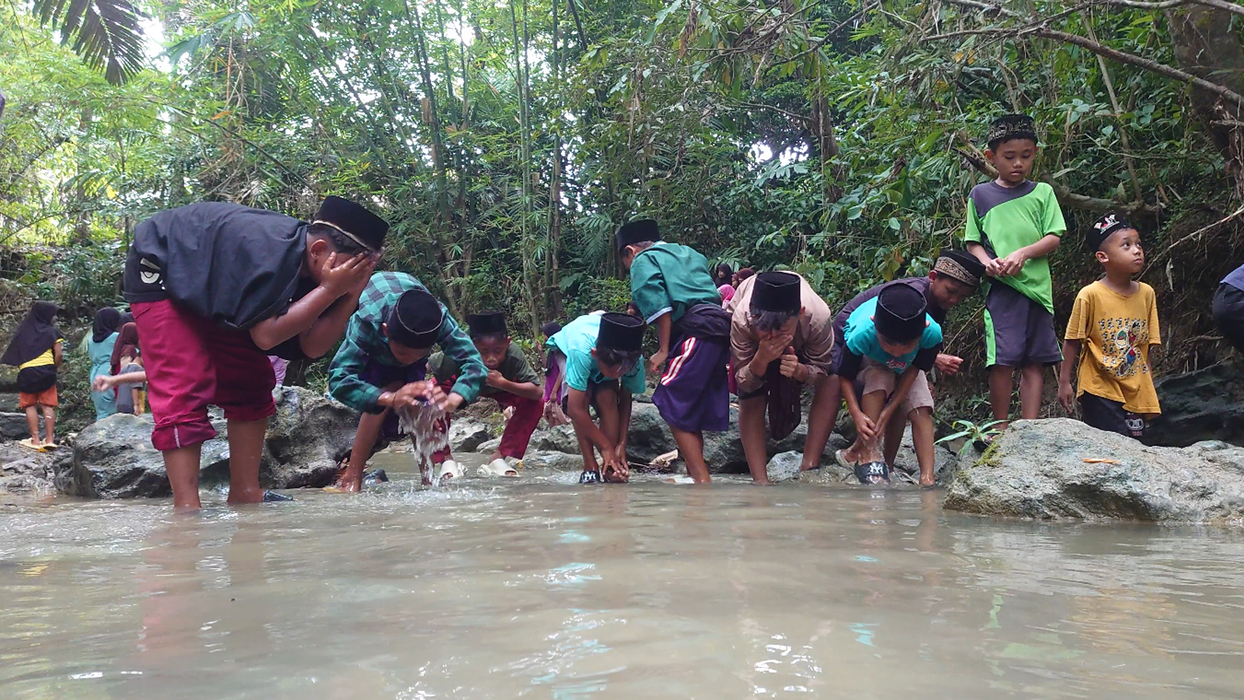 Setiap hari, sebelum mereka mengaji atau menunaikan shalat, para santri harus berjalan menuruni jalan curam dan licin menuju sungai hanya sekedar berwudhu.