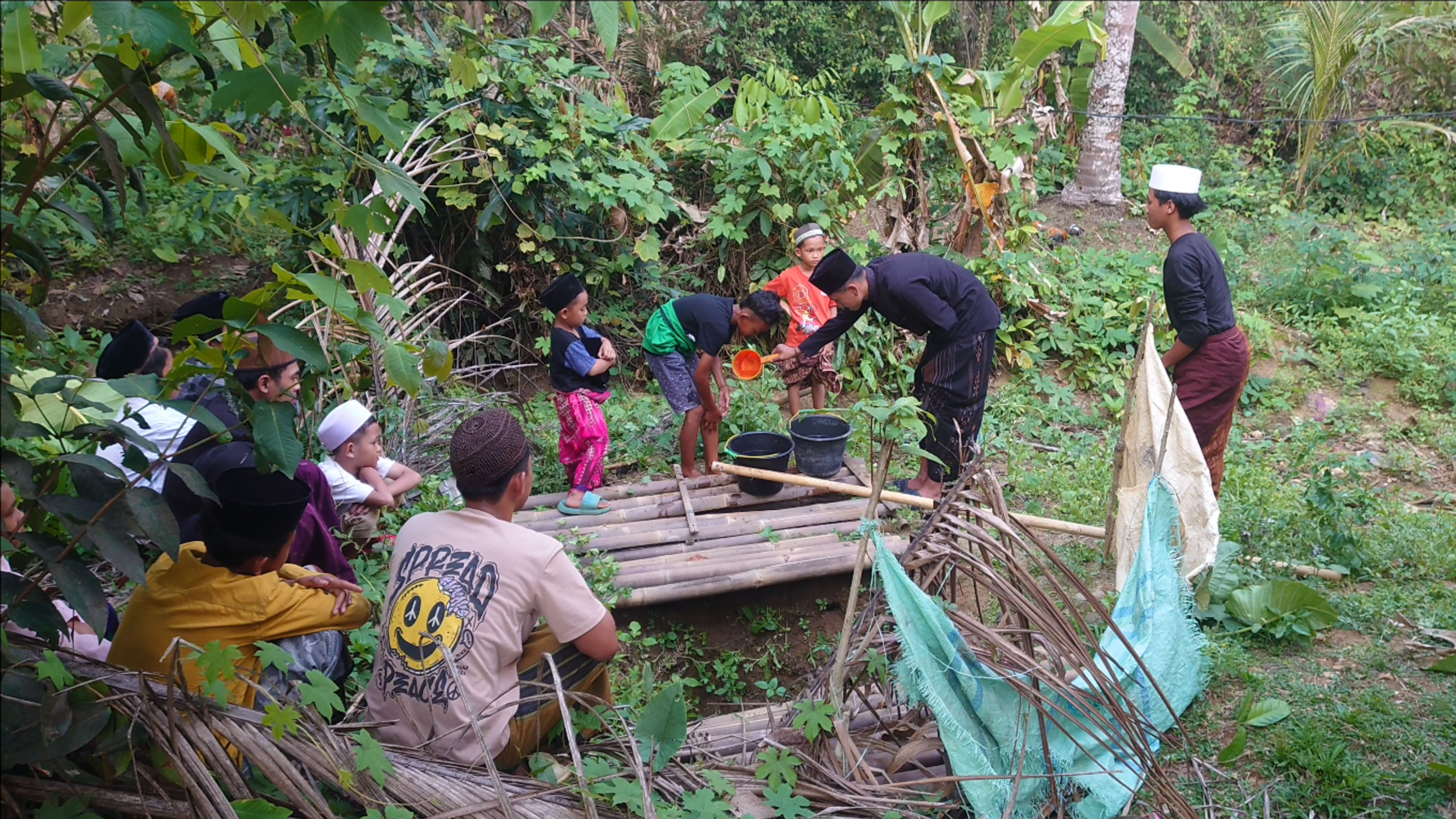 Para santri pun harus berjalan jauh dengan jalan yang licin untuk mendapat air.