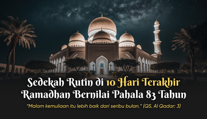 Bahkan, bila kamu bersedekah Rp. 100.000 rupiah saja dengan ikhlas maka insya Allah nilainya setara dengan ~3 miliar rupiah (karena dikalikan 1.000 bulan atau 83 tahun).