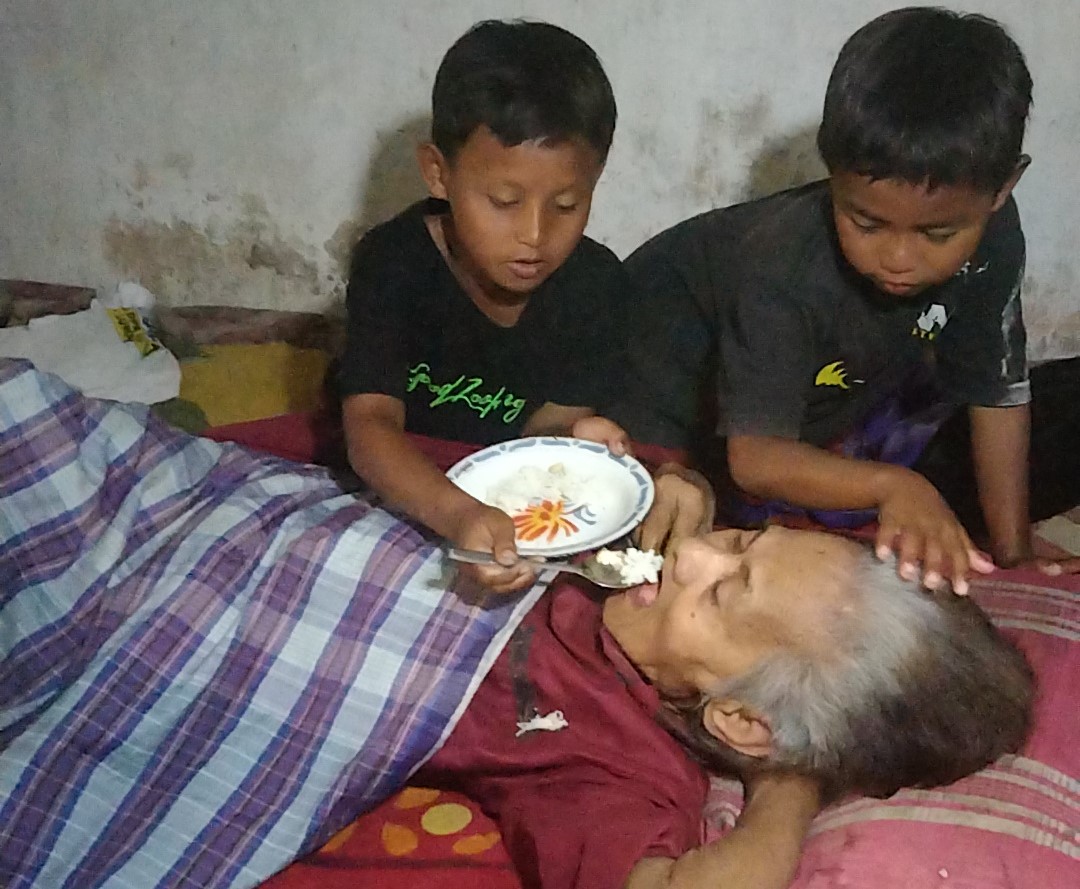 Saat itu pun 2 bocah kecil ini tinggal bersama kakek dan neneknya. Pilunya, sudah 2 tahun kakeknya terbaring sakit menderita stroke hingga lumpuh.