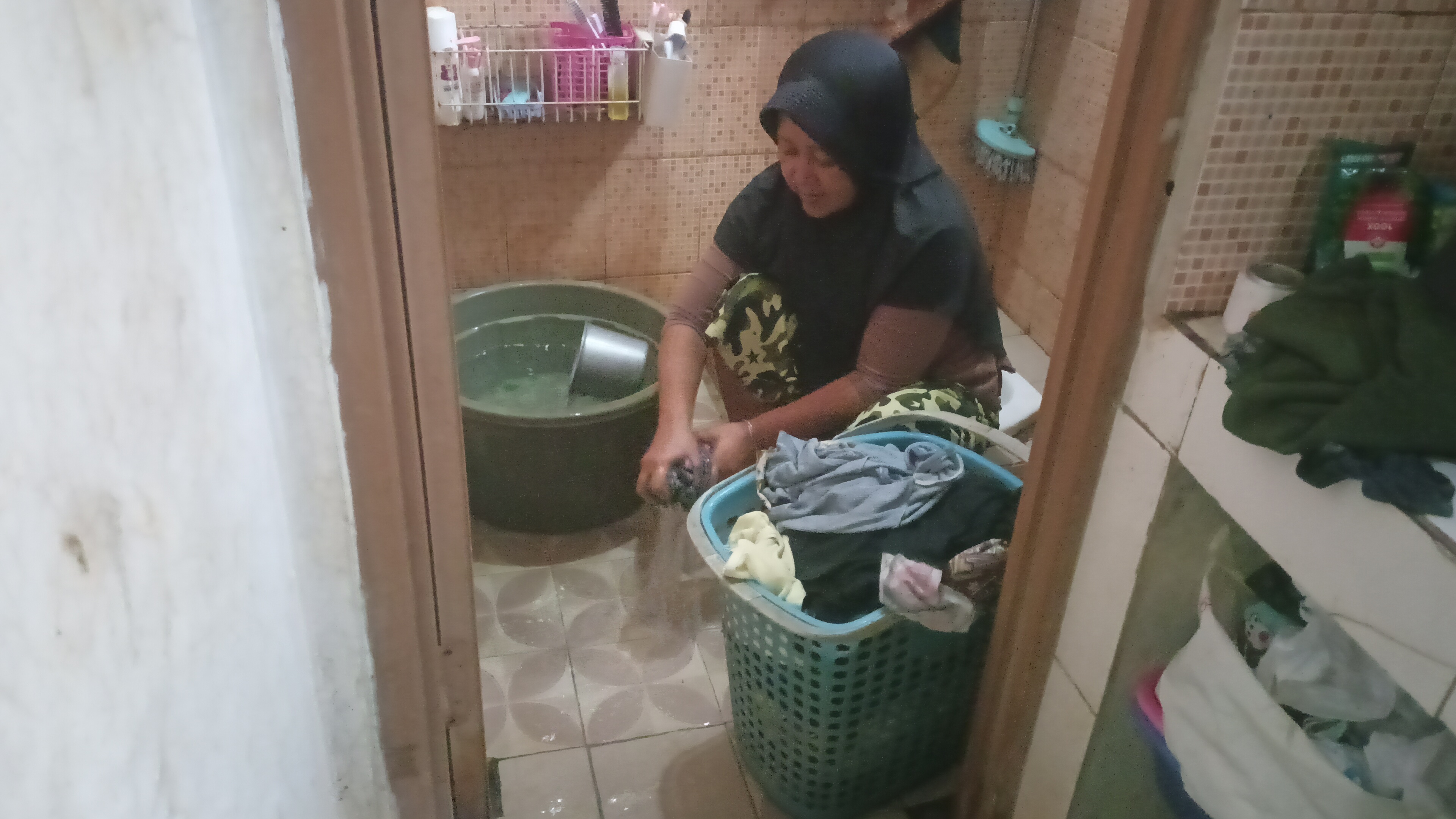Sebagai buruh setrika, penghasilannya tak menentu. Bahkan sering tak cukup untuk membeli obat rutin, popok, dan membayar kontrakan.