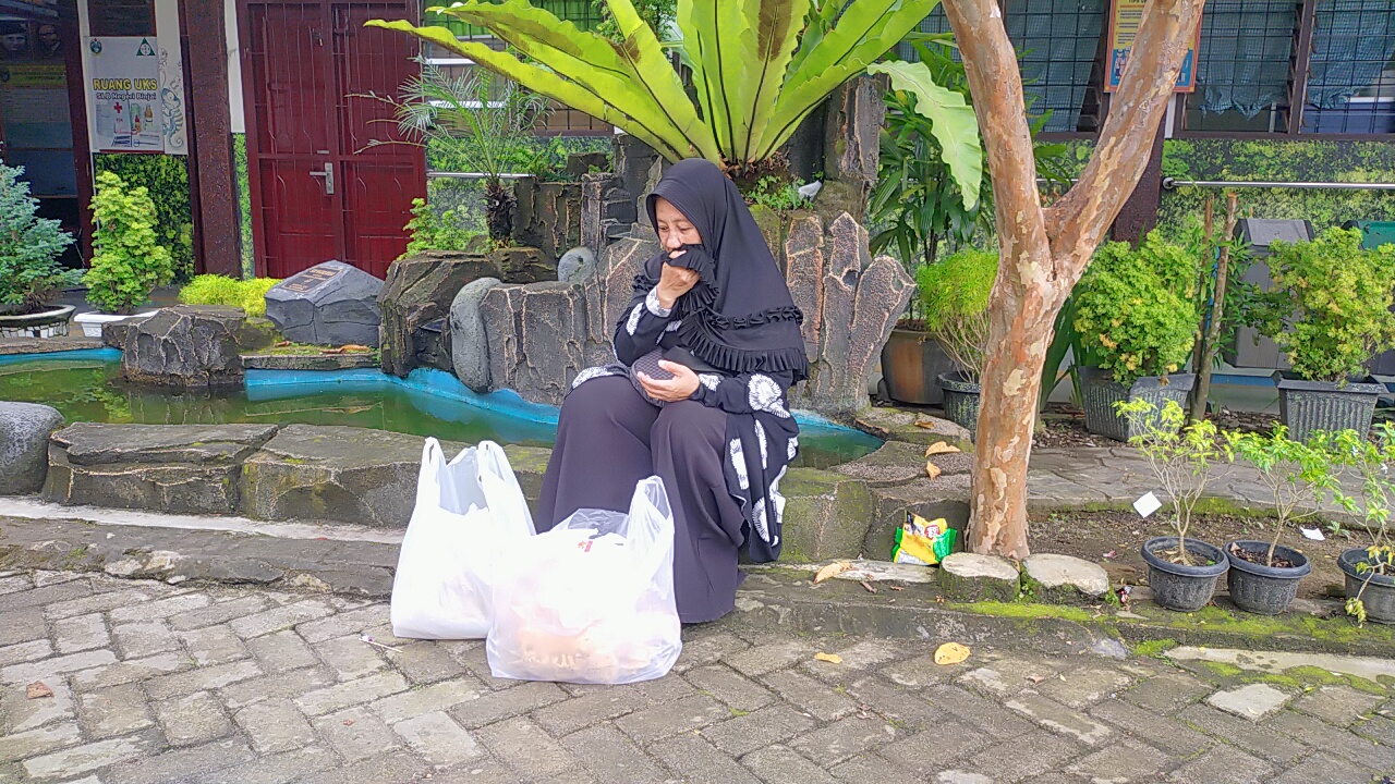 Kaki yang semakin hari semakin membesar membuat ia kesulitan saat berjualan. Ibu Fatimah berjualan keripik di sekitaran sekolah sang anak.