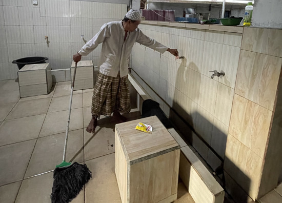 Berbeda dengan Kakek Taes. Lansia 63 tahun ini tetap setia menjaga masjid saat Hari Raya tiba. Setiap hari Kakek selalu membersihkan masjid demi kenyamanan jama’ah saat beribadah. Upah yang didapatkan pun hanya 15 ribu per hari.