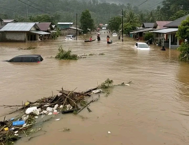 Jangankan rumah, akses jalan pun terputus karena arus yang sangat deras 🥹