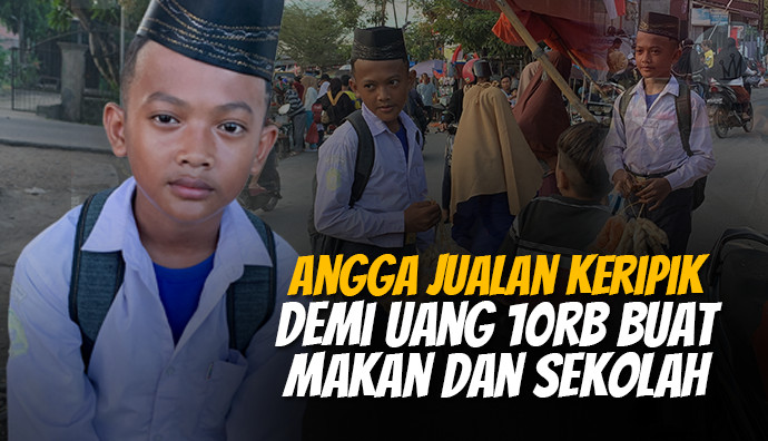 Namanya Angga (13) setiap hari ia harus menjajakan keripik yang dijual nya demi makan dan terus sekolah.