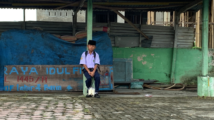 Untuk bertahan, Dafa lah yang kini cari nafkah dengan keliling jualan susu kedelai sepulang sekolah.