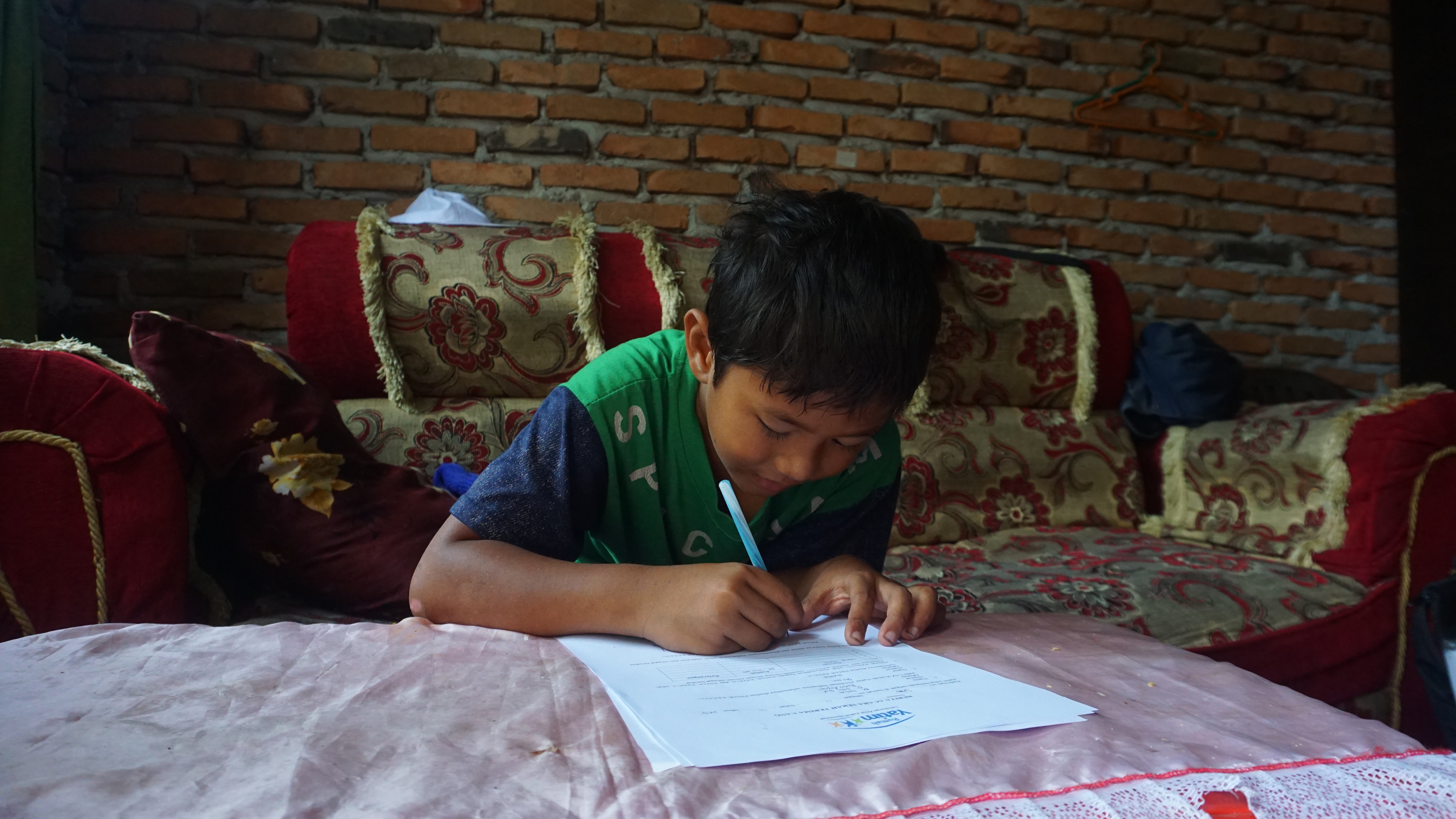 Paujan bocah kelas 2 SD ini harus menjalani sekolah sambil berjualan. Meski berat Paujan harus kuat.