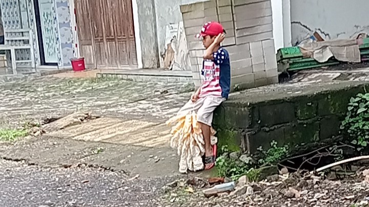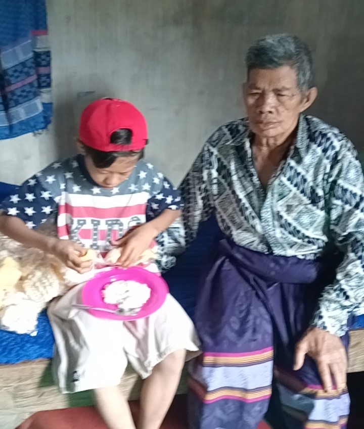 Saat tim relawan mendatangi Ali, ia sedang berjualan bersama kakeknya. “kebetulan kakeknya pengen ikut katanya , biasanya gak ikut di rumah saja” ucapnya.